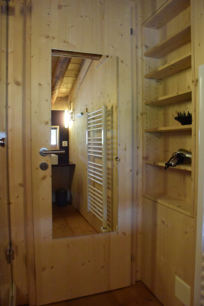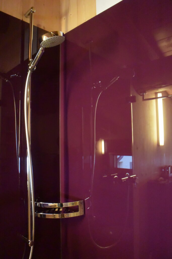 Im Bad gibt es eine Dusche, WC und ein Lavabo