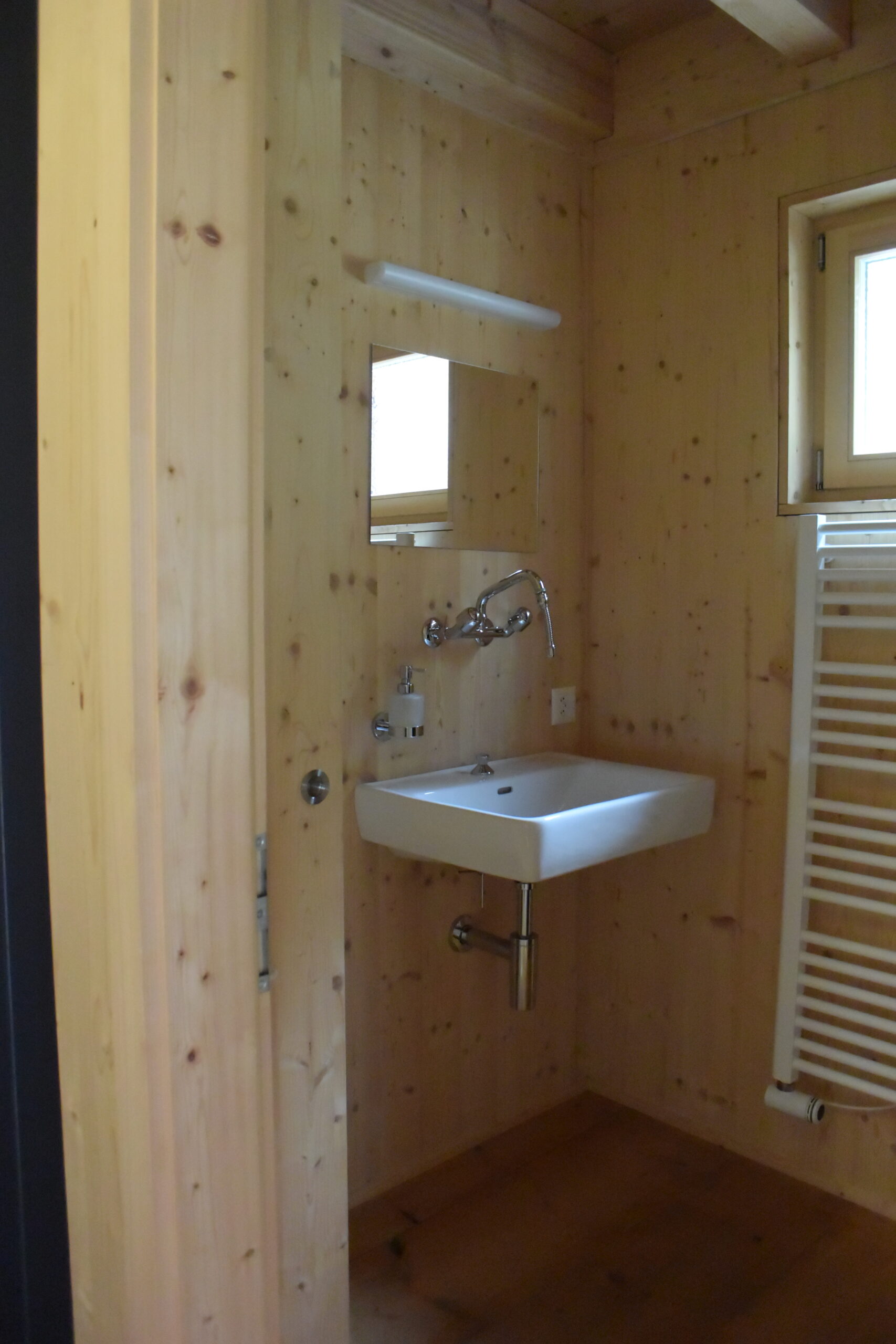 Im WC im unteren Stock befinden sich auch Waschmaschine und Tumbler.